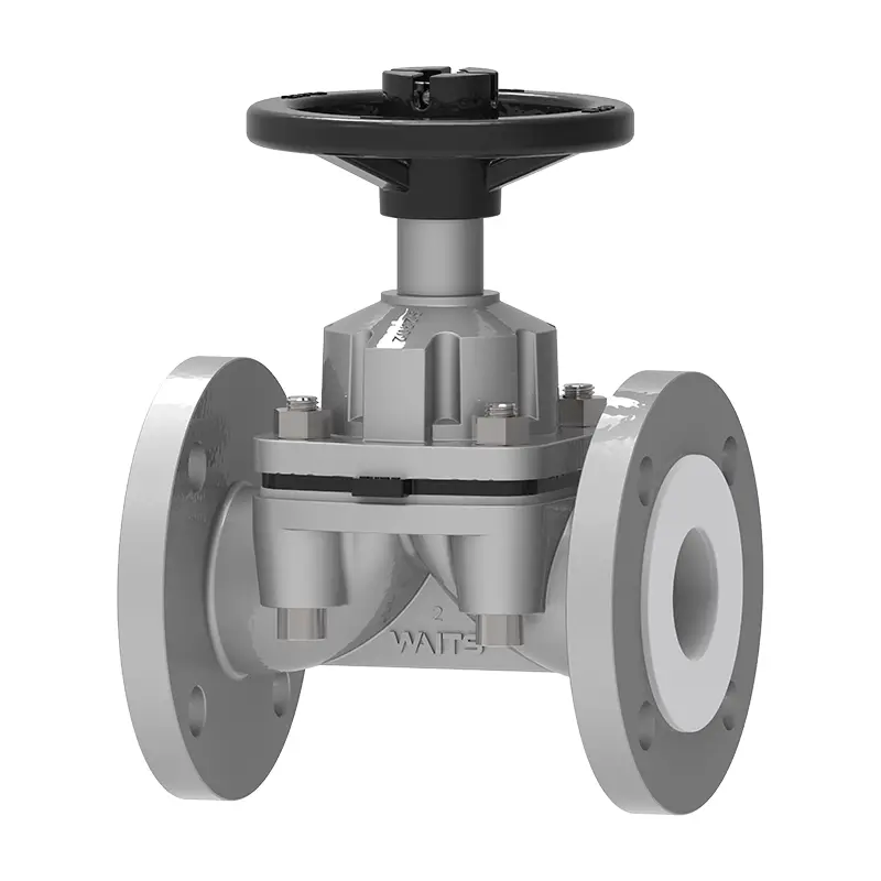 Клапан клапана Waits PTFE, вистелений діафрагм -клапан - стійкий до корозії та міцний клапан, який ізолює середовище від металевих частин через фторопластичну діафрагму і досягає відкриття/закриття та герметизації через пружну деформацію діафрагми. Підходить для кислот, хлору, хлорованої води та розчинів, деіонізованої води, солі, лужних розчинів, вапна та мідних хімічних речовин Індикатор позиції. Механічні частини виділяються з рідини.